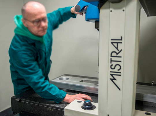 Il processo che porta alla consegna del manufatto parte dall'acquisto, dall'analisi, e dalla valutazione della materia prima, passando dalla trasformazione del disegno attraverso moduli CAD/CAM e arrivando alla messa in macchina di pezzi singoli o lotti di centinaia o migliaia di componenti. I sistemi di controllo sono gestiti da un’unità centrale computerizzata con una tolleranza davvero minima (+/- 0,05). Al termine del ciclo produttive si passa alla fase di controllo con apposito sistema Altimetro Mitutoyo con stampante e macchina di misura mod. DEA MISTRAL 10.07.05, 750x650x450 manuale.